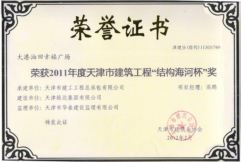 大港油田幸福广场荣获天津市建设工程“金奖海河杯”奖。